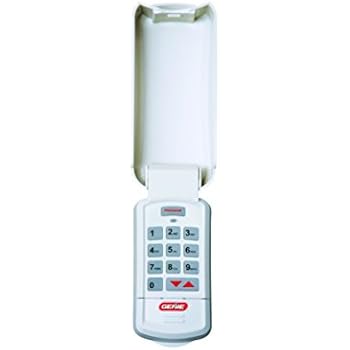 Depress it again and the garage door should open. If this works, close the protective cover and put away the stepladder. Check the compatibility list to confirm compatibility with your garage door opener. Includes keyless entry, hardware, battery and instructions.